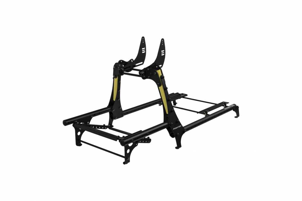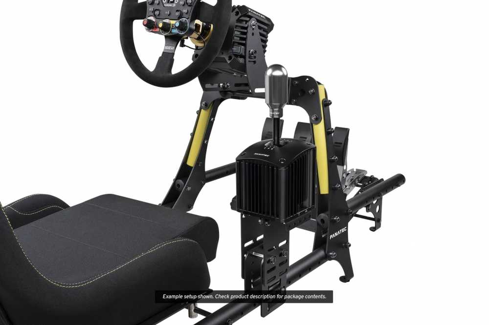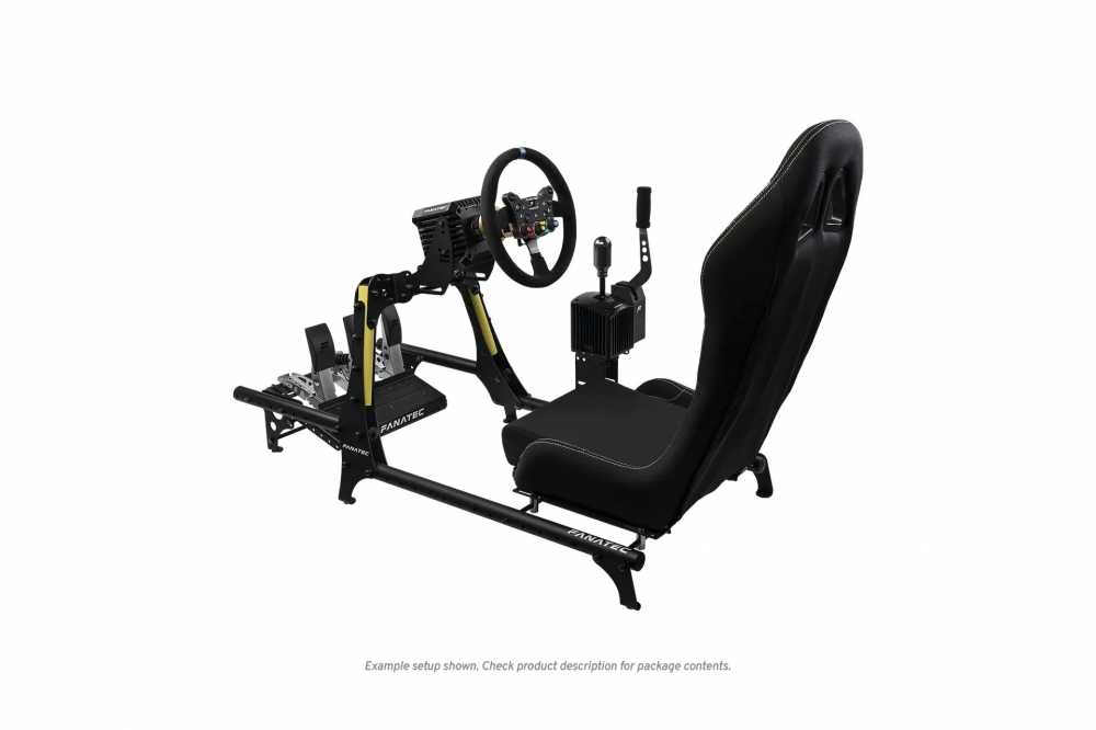 傾斜的立柱比矩形截面結構更能有效分散底盤上的負載。 CSL 駕駛艙可相容於所有 Fanatec 直驅系統,甚至包括 25 牛頓米的 Podium DD2 軸距方向盤,其踏板專為承受力感測器煞車的高煞車力而設計。